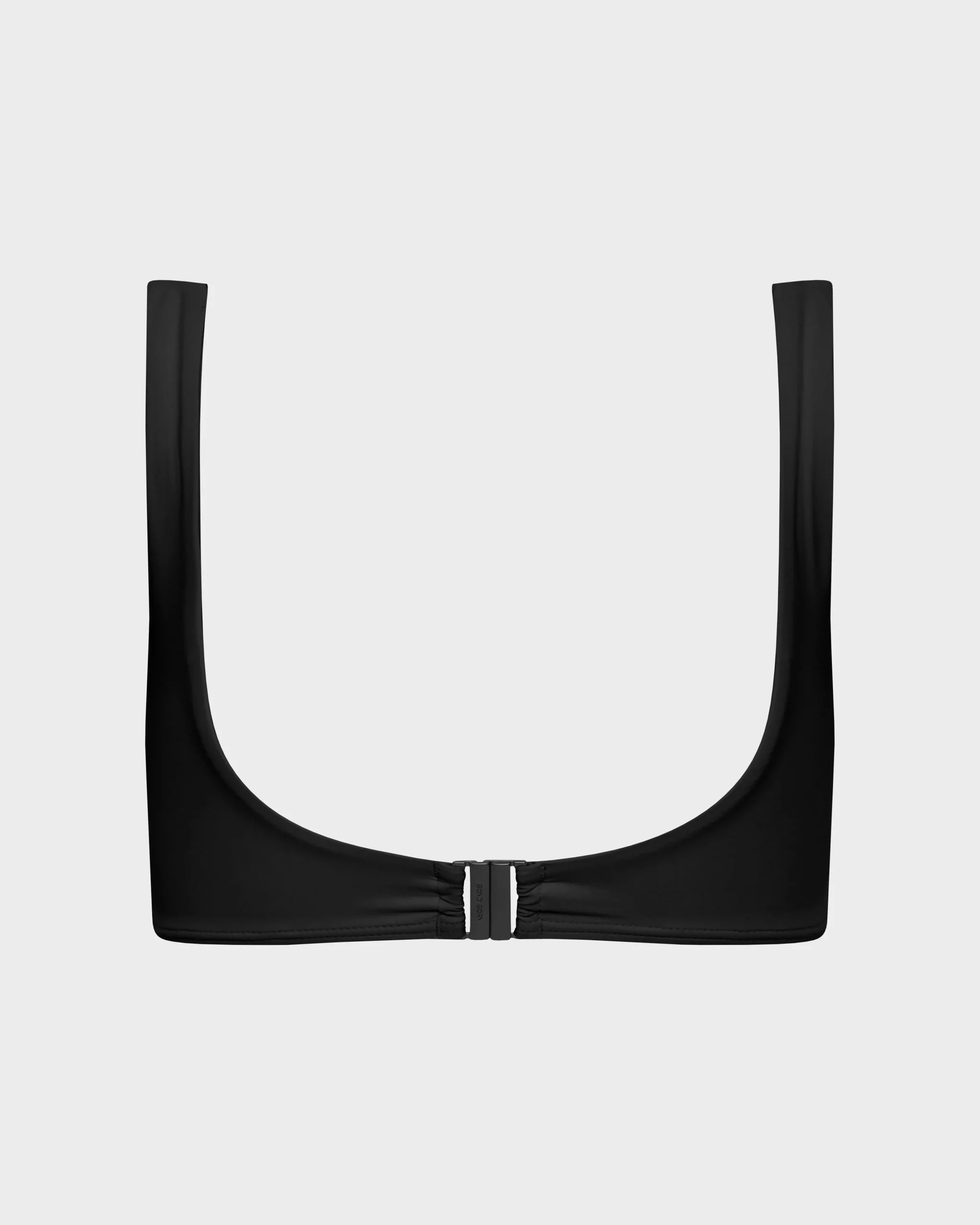 Verona in classic black is a chic, elevated, bikini top cut from our technically advanced Sculpteur® fabric that supports, smooths and flatters the female form. Verona features a scoop neck line with a feature V wire at centre front to flatter the décolletage. The top has comfortable, wide shoulder straps and invisible under-bust support and best suits cup sizes B-DD.