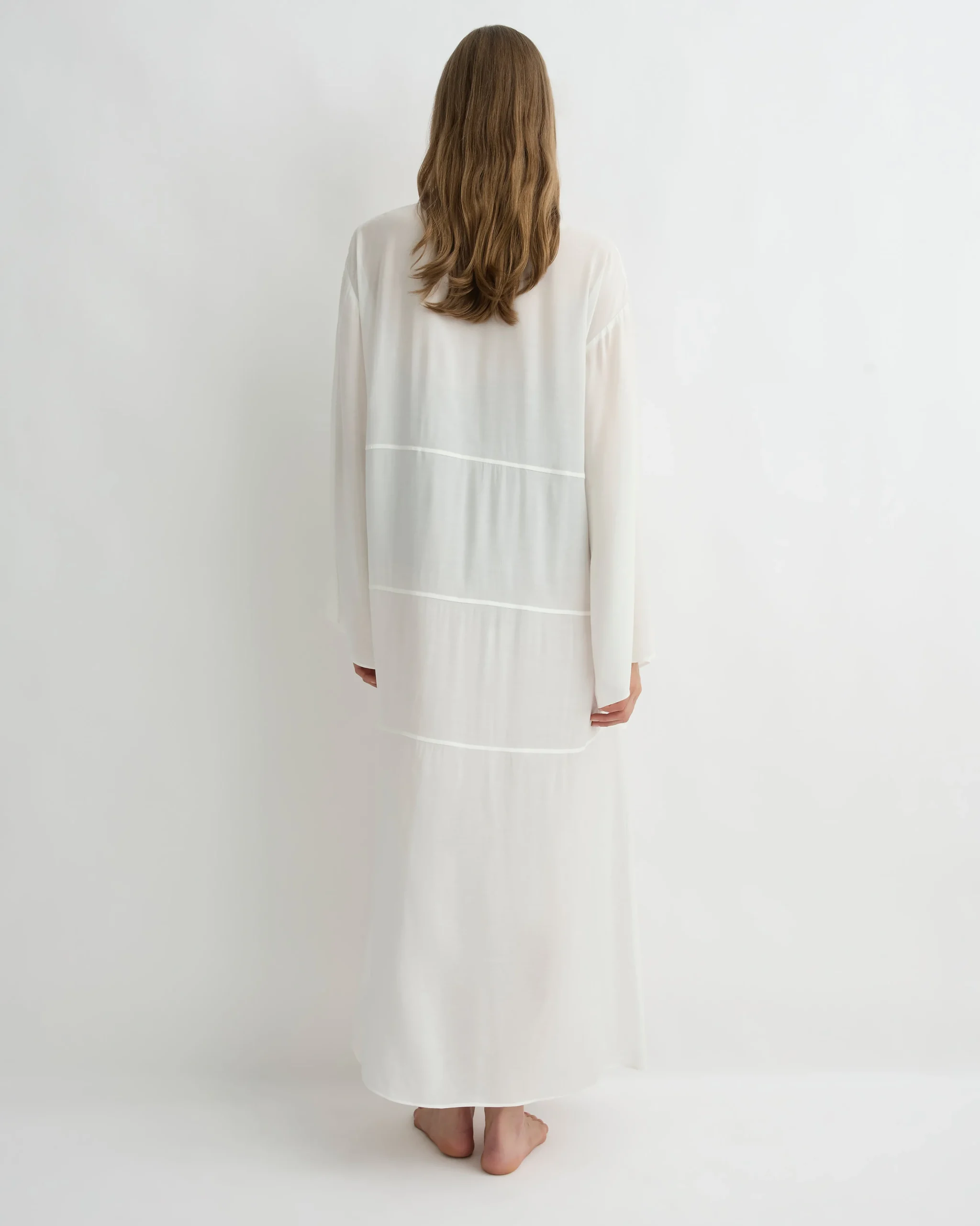 The Cremona Tie-Front Maxi Coverup in White is a flowing, lightweight layer crafted from soft European rayon voile. Defined by its gently flared silhouette, panelled seams and relaxed long sleeves, this maxi-length design fastens with an elegant tie-front closure. Cut for a relaxed fit with flexible sizing, it slips easily over swimwear for effortless resort styling.