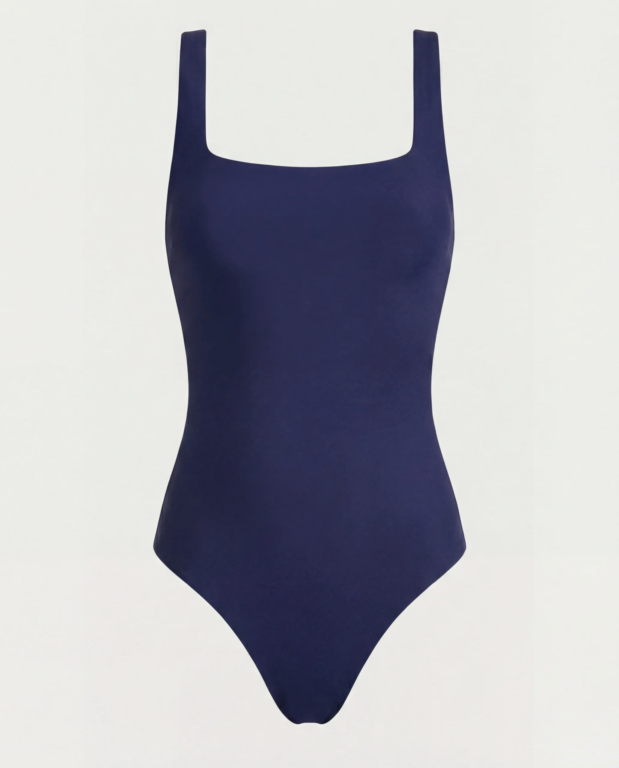 An elegant and flattering one piece swimsuit, the Margot in Maritime features a square neckline front and back. Featuring wide, soft shoulder straps, a medium-high cut leg and regular bottom coverage, Margot is self-lined in our ultra-soft Embodee™ fabric that gently shapes the silhouette. One of our all-time best sellers, Margot offers timeless, effortless style and supreme comfort.