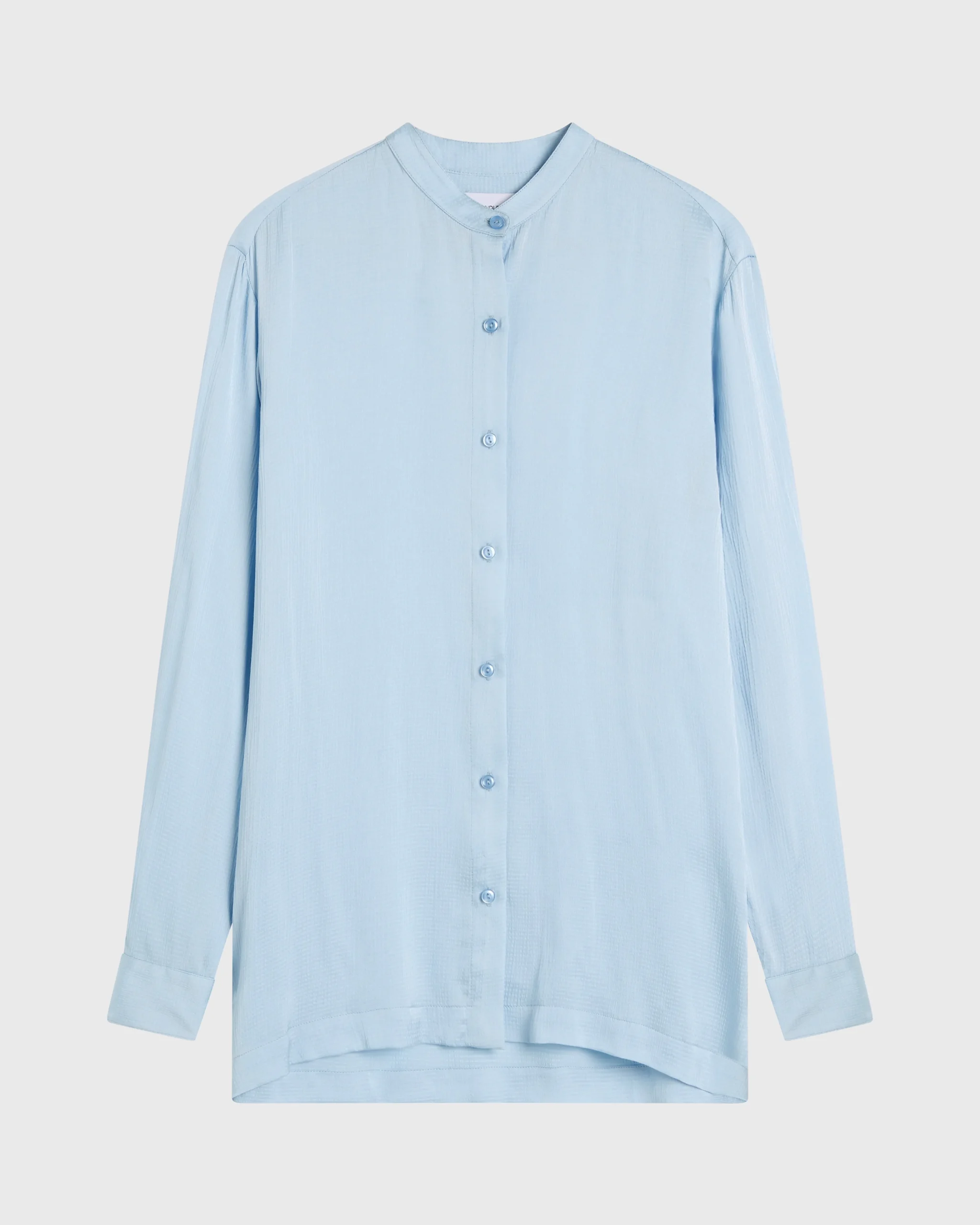 The Ardea Long Sleeve Shirt in Hydrangea is crafted from light, cool, sustainable European hammered satin with a relaxed yet elevated feel. This long-line style shirt features a mandarin collar, drop shoulders and hemmed cuffs which are finished with Japanese buttoning. Designed to skim the body, the shirt pairs perfectly with the Ardea Luxe Pant in Hydrangea for a chic, modern take on the pantsuit that is deal for day-to-night dressing. Style with sandals for an effortlessly polished dinner look.