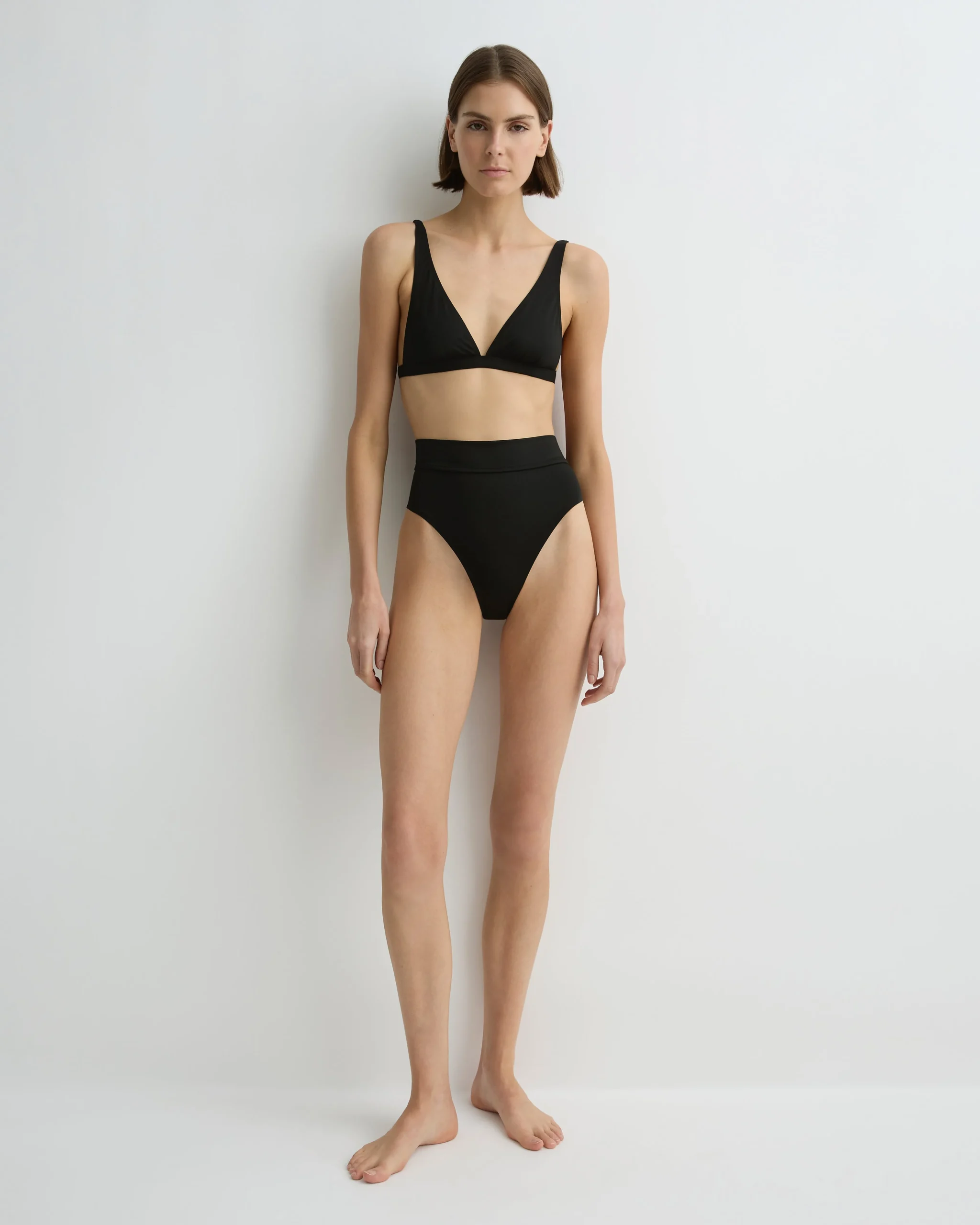 Aurelie in Black is a timeless classic bikini top, featuring a V plunge neckline, adjustable shoestring straps and a narrow band under the bust-line for support. Made using our luxury Singuleur® fabric that hugs the body like a second skin, Aurelie will be a core part of your swim wardrobe for years to come.