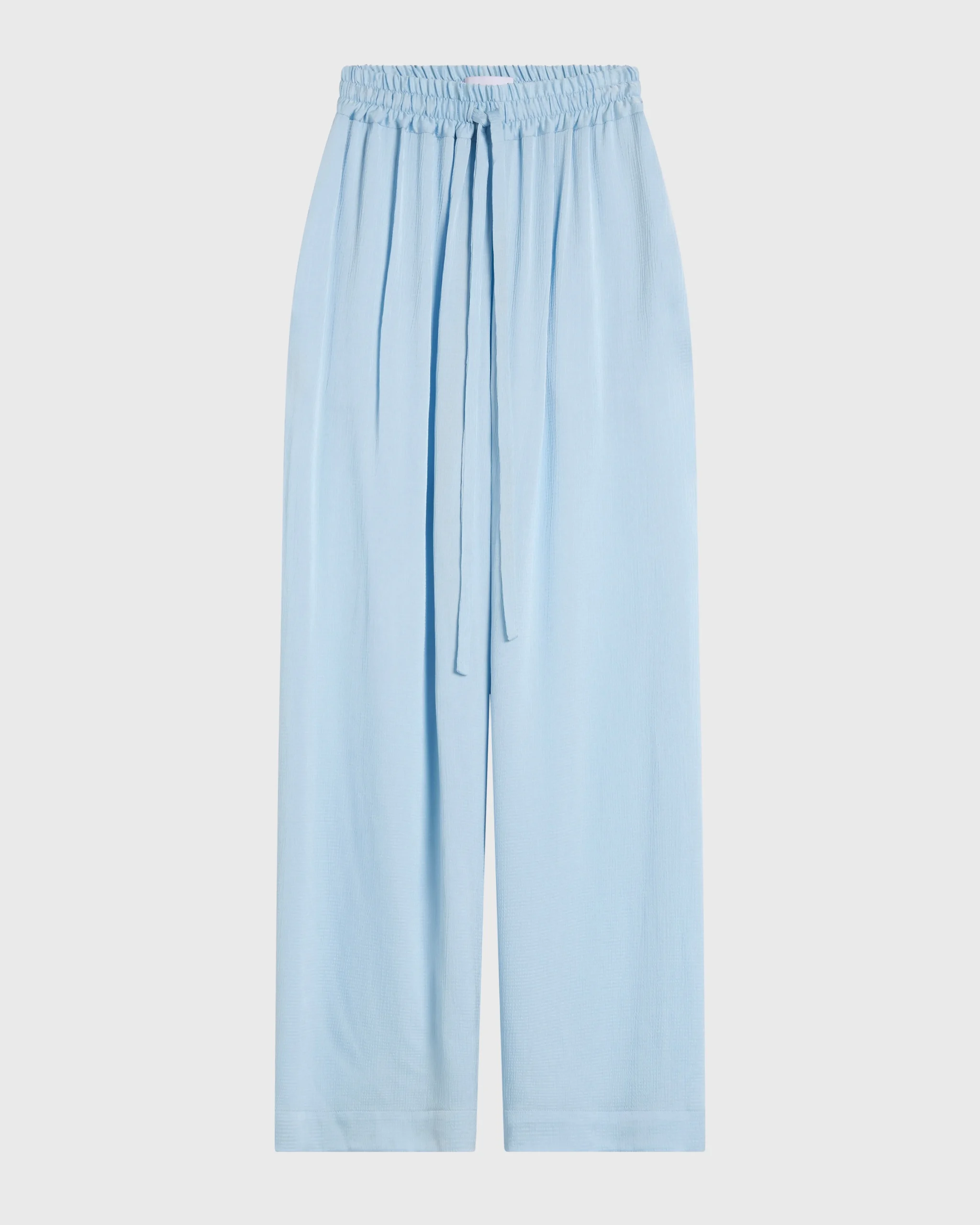 The Ardea Luxe Pants in Hydrangea is cut from our sustainable, European hammered satin, loved by our customers for its cool hand feel, elegant drape and fluidity of movement. These Luxe, effortless pants have an elasticated waistband with adjustable self tie and a relaxed silhouette. An effortless wardrobe staple for day or night. Team with our matching Ardea Long Sleeve Shirt for a chic set, or throw over your Bondi Born swimwear in cream or pale blue.